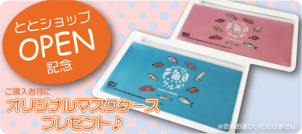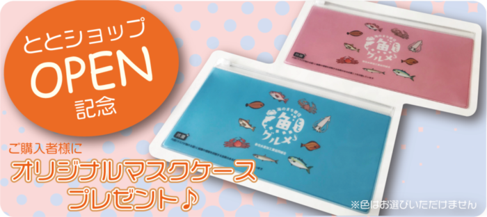 ととショップOPEN記念「オリジナルマスクケース」をととショップで商品をご購入されたお客様にプレゼント致します。(カニガラは対象外です)