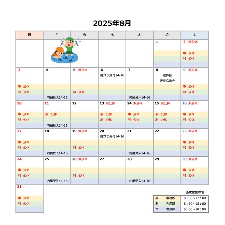 2025年8月の営業日を更新しました